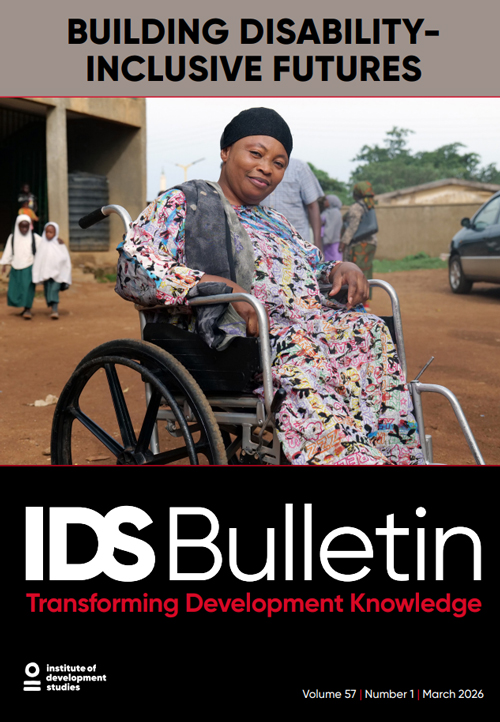 This issue of the IDS Bulletin presents a collection of articles written by researchers and practitioners involved in the UK aid-funded Disability Inclusive Development (DID) programme. In particular, the articles include a focus on three broad themes: strengthening the evidence base; cross-cutting issues relevant to disability-inclusive development; and the central role of Organisations of Persons with Disabilities (OPDs).