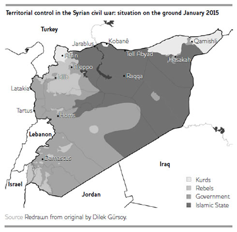 This tactical retreat was based on the idea that a poorly equipped Kurdish force would be easily defeated and was thought to be tolerable as an interim placeholder, especially if kept in check by opposing groups, notably IS. Exploiting its own geopolitical momentum, IS went on to brutally occupy vast tracts of Kurdish majority areas in the north, reaching the limits of its expansion in Kobanê during October 2015. Over time, however, the fortunes of war changed, not only in favour of IS, but also the Kurdish People's Protection Units (YPG) and associated Women's Protection Units (YPJ). All warring insurgents were left with an array of weapons, some of them heavy. The Kurds even started to get air support from the US-led anti-IS coalition, whereas the SAA became overstretched, which motivated not only Iranian military support but also a last-minute Russian intervention in 2015 and, increasingly, direct Turkish military action against Syrian Kurdish forces and their allies in February 2016, using long-range artillery.