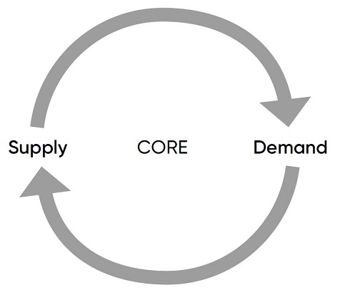 Market systems are composed of transactions. One party supplies – goods, services, labour, employment, or rights – and another party receives. This does not necessarily imply direct communication between both parties. Linking supply with demand is the core function of markets.