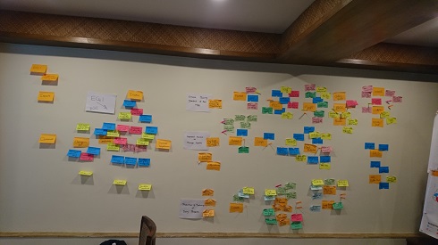 Figure 3 The evaluation team plot evidence for dairy sector interventions on a white board