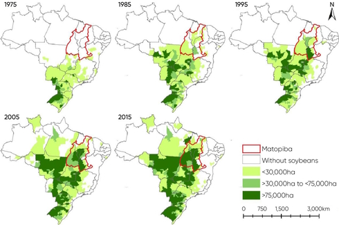 Figure source: Copyright Grupo de Estudos em Mudanças Sociais, Agronegócio e Políticas Públicas (GEMAP), based on Wesz Jr’s data from IBGE (Municipal Agricultural Production). Addition of the Matopiba area by Gabriel Lopes and Viviane Coutinho. Reproduced with kind permission.