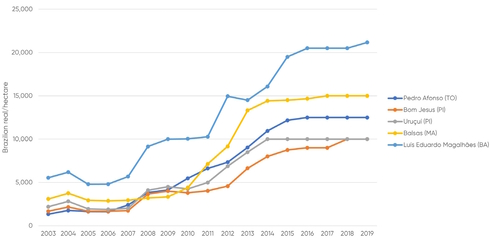 Figure 3 Land price in municipalities of the Matopiba (2003–19)
