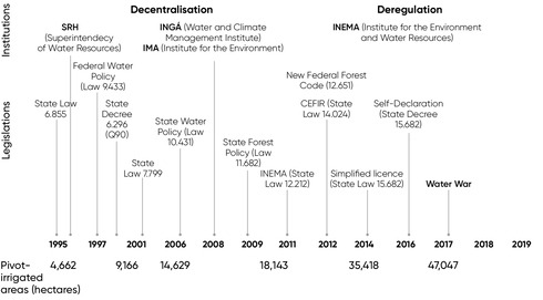 Figure 3 Timeline of water and forest legislation in Bahia State and pivot irrigated area